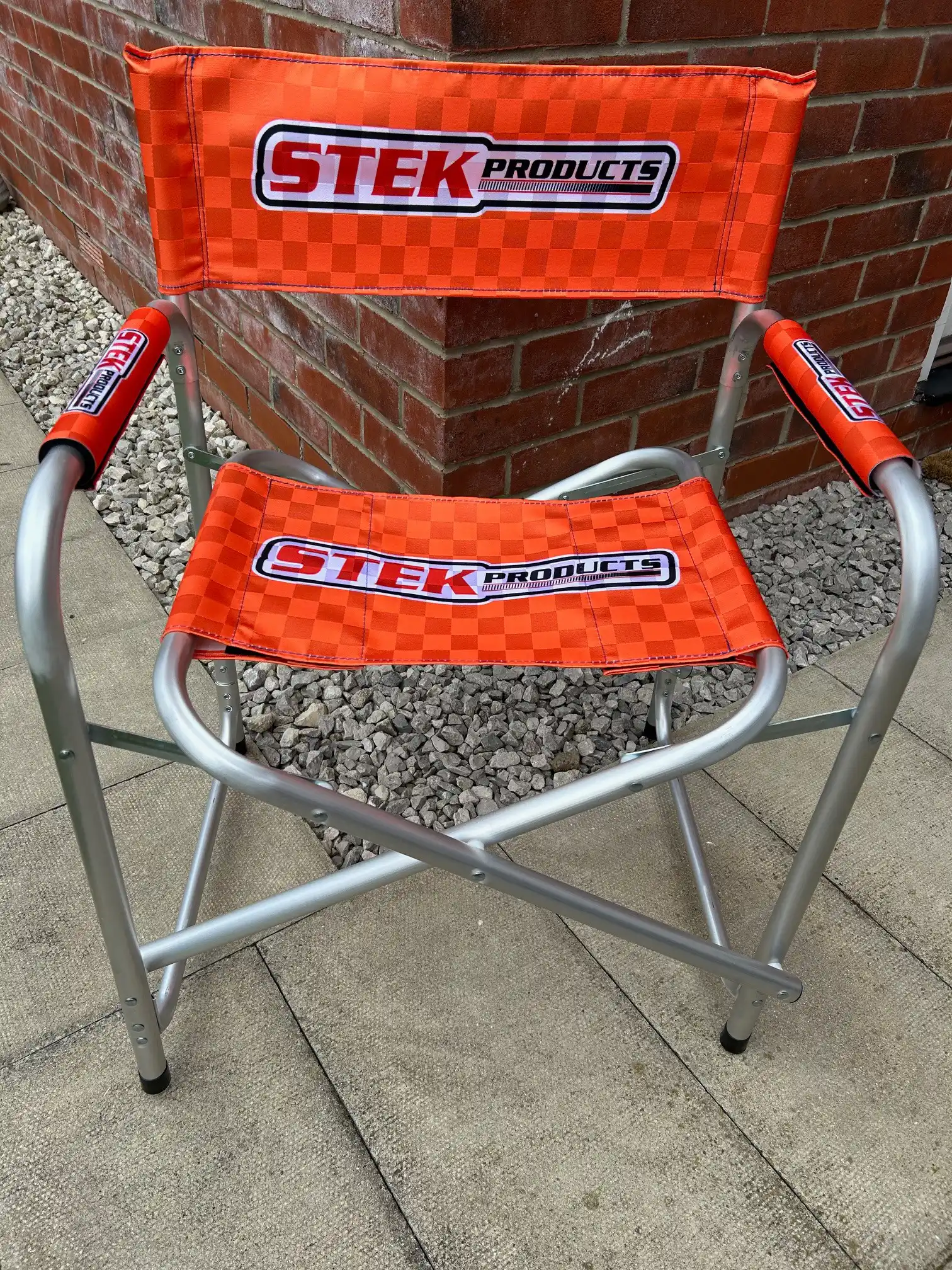 Experience comfort with a Stek Products pit chair, designed for racing professionals. Cool design and custom branding options, they bring premium style and practicality to every pit setup. Design is fully customisable to your specifications. Comes with a folding sidetable (not shown)